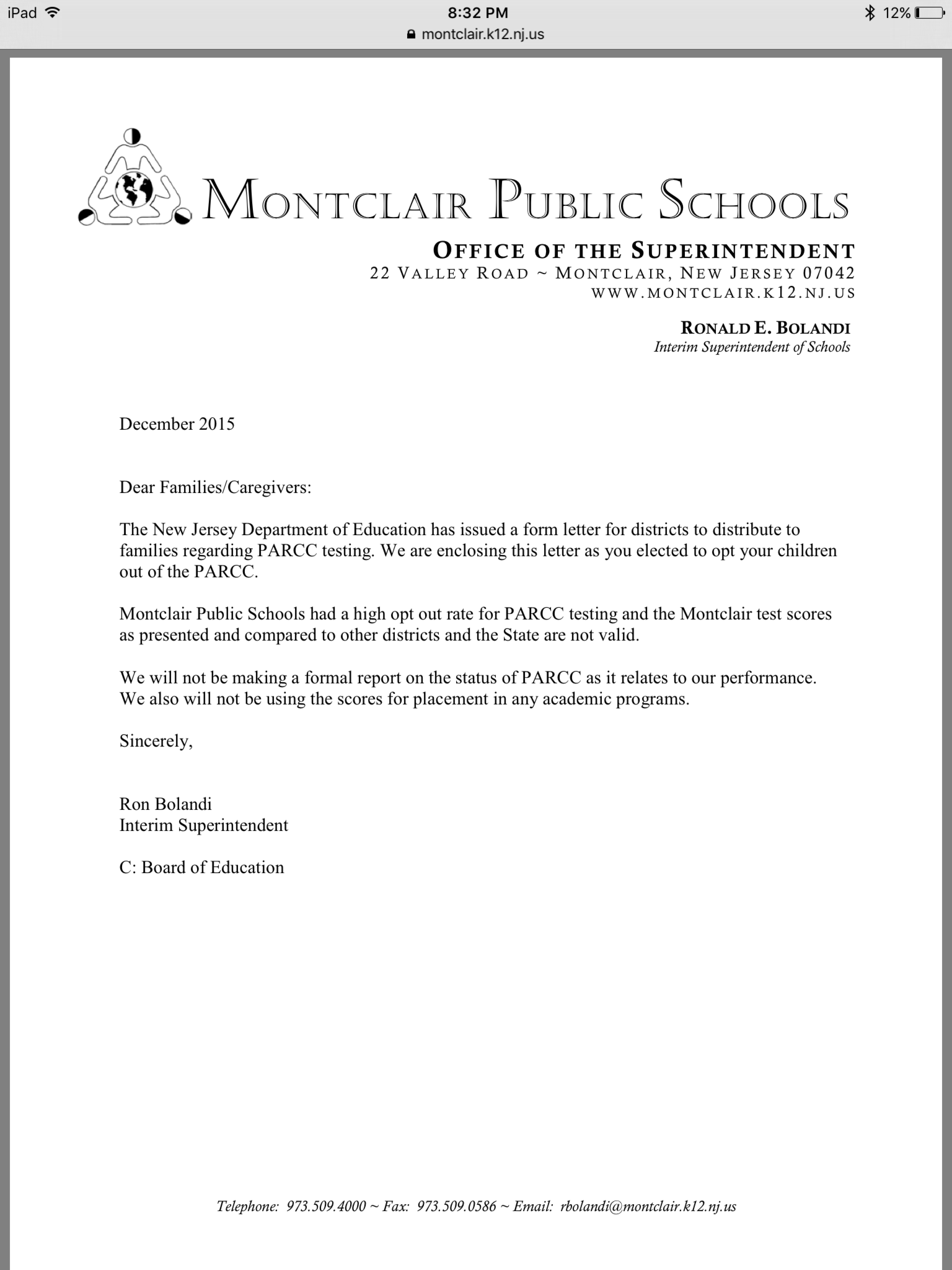 Today, emails and snail mails were sent to parents of all affected students in the district containing PARCC opt out procedures.