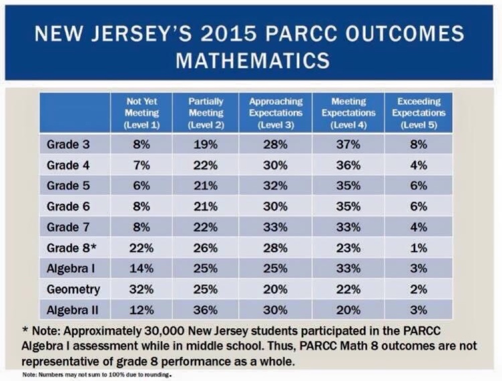 New Jersey’s Unsurprising PARCC Math Results, Grades 3-11